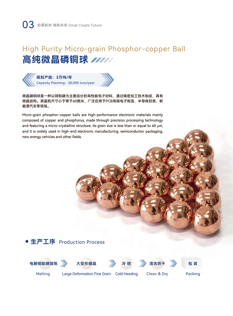 微晶磷銅球是一種以銅和磷為主要成分的高性能電子材料,通過精密加工技術(shù)制成,具有微晶結(jié)構(gòu)。其晶粒尺寸小于等于60微米,廣泛應(yīng)用于PCB高端電子制造、半導(dǎo)體封裝、新能源汽車等領(lǐng)域。
