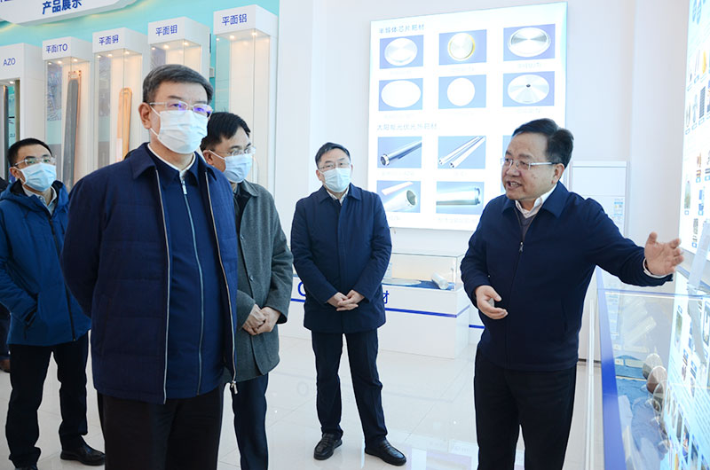 在調(diào)研中,黃寧生副主任一行參觀了歐萊材料研究院,了解了歐萊新材的高質(zhì)量發(fā)展情況,傾聽(tīng)了歐萊新材董事長(zhǎng)文宏福的意見(jiàn)和建議。